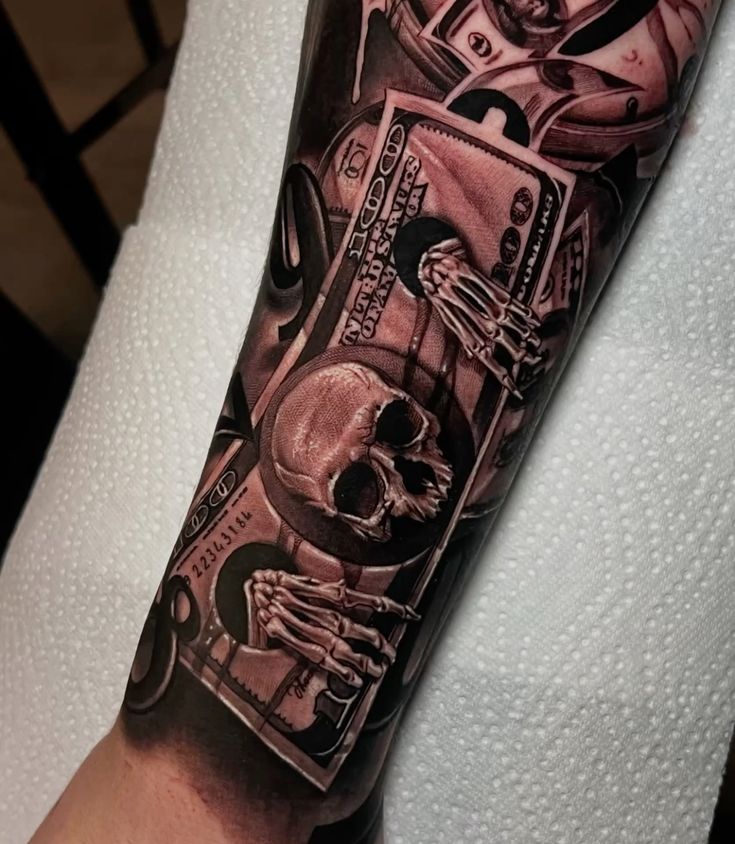 4) The Value of Life and Money: Skull and Banknote Tattoos