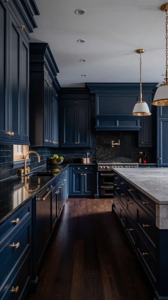4) Midnight Blue and Brass Kitchen