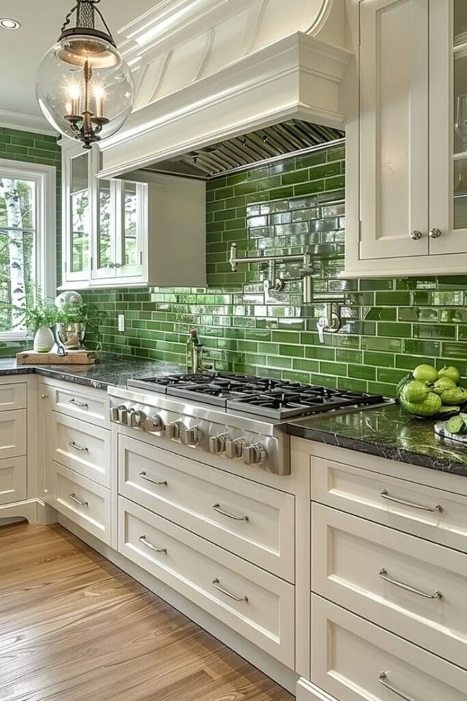 6) Emerald Splash: A Vibrant Kitchen