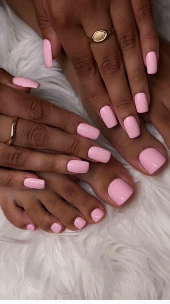 Classic Pink: Using the same pastel pink shade on your fingernails and toenails creates a clean look. This simple yet effective style is perfect for everyday use and goes with any outfit.