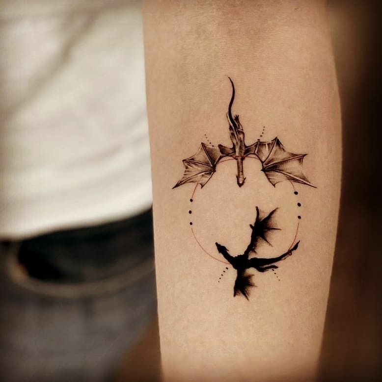 15) Minimalist Dragon Tattoo: Two Dragons, One Circle