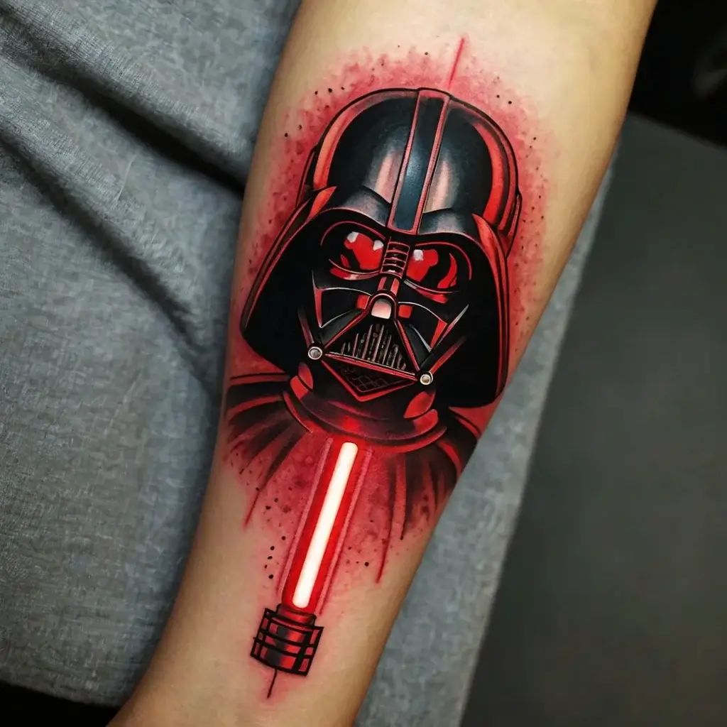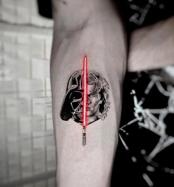 6) Geometric Art with Darth Vader’s Lightsaber: Minimalist and Powerful Tattoo