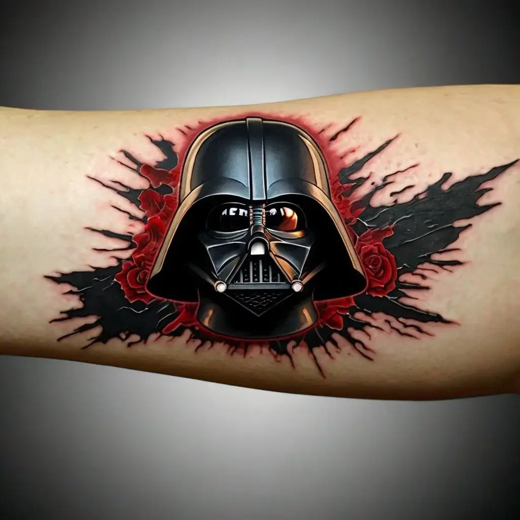 28) Rose-Detailed Darth Vader Tattoo: Dark Romanticism