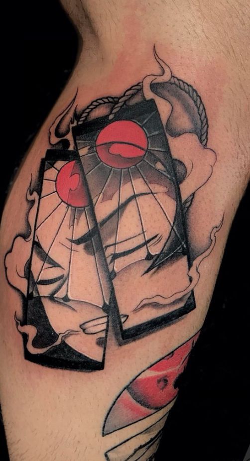 31) Anime-Themed Tattoo: Shattered Face and Sun