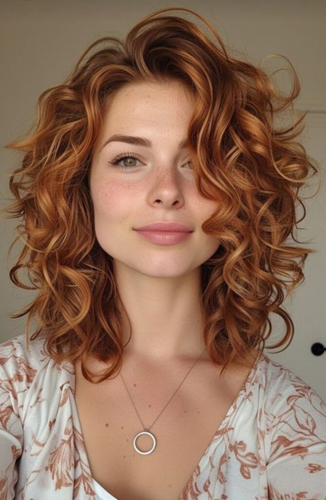 Short, curly haircuts and copper-colored hair create an energetic and lively look. This style is a great option for those who love natural curls.