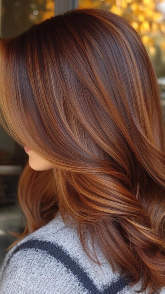 This hair color, which mixes copper and caramel shades, makes hair look richer and shinier. It’s perfect for people who want a natural and warm look.