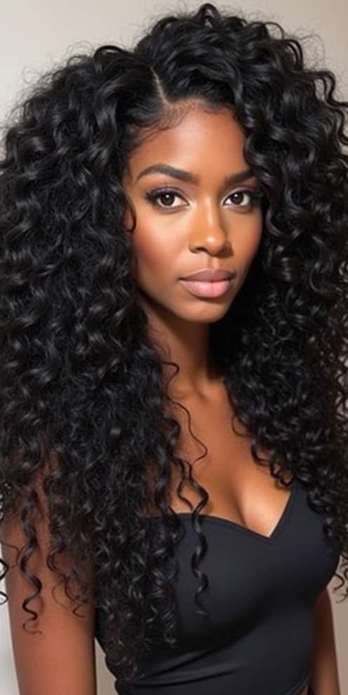 The elegance of black, voluminous curls is undeniable. This natural, full look gets attention anywhere.