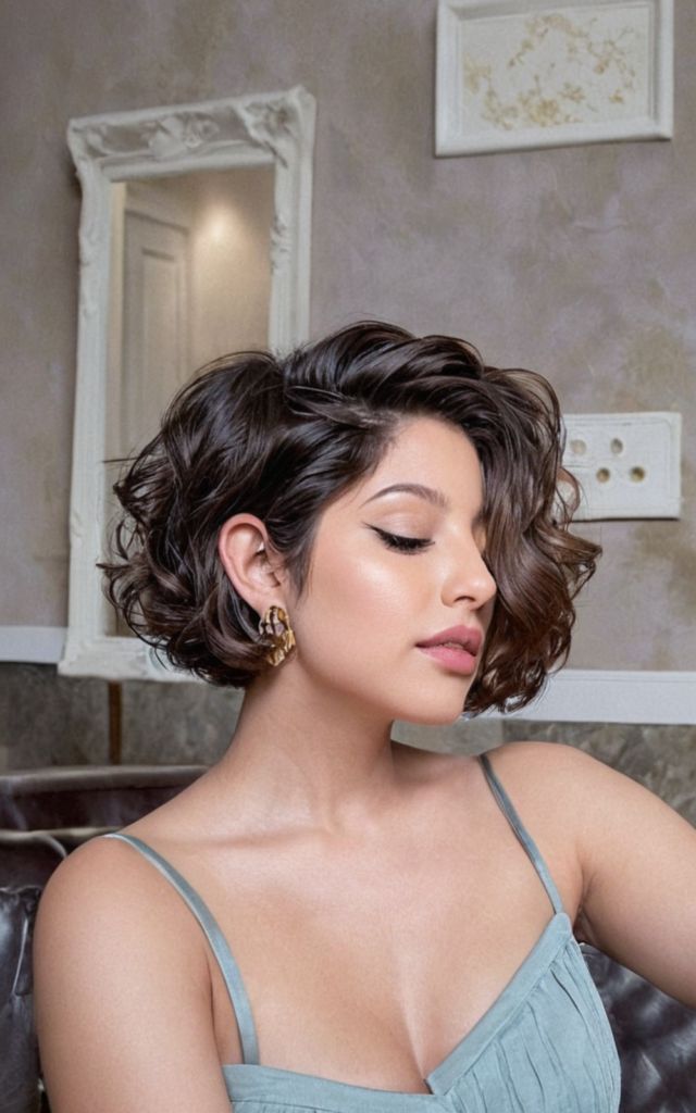 The short, wavy bob cut is a classic and elegant style. This hairstyle makes your face look good and gives you a modern and feminine look.