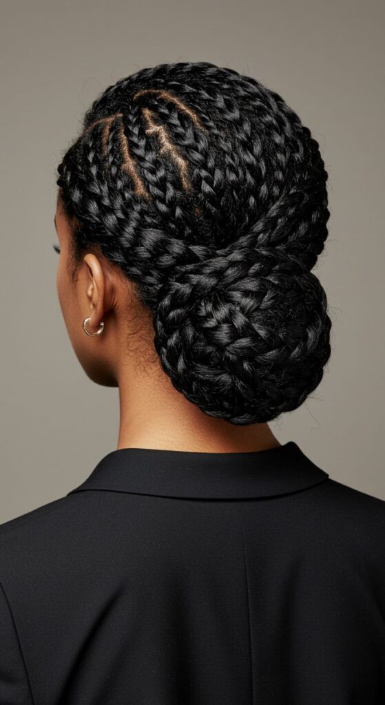 This style combines braids with an elegant bun, creating a modern look with a classic touch. It’s perfect for work or special occasions.