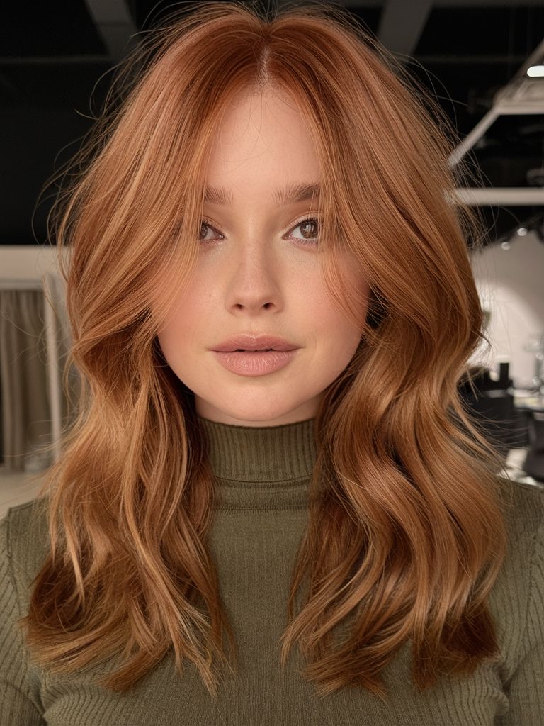 4) The Splendor of Warm Tones: Copper Red Long Waves