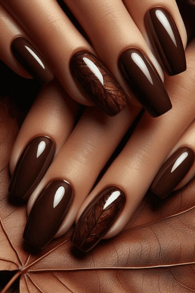 6) Glossy Chocolate Brown Nails: Elegant and Eye-Catching Fall Style