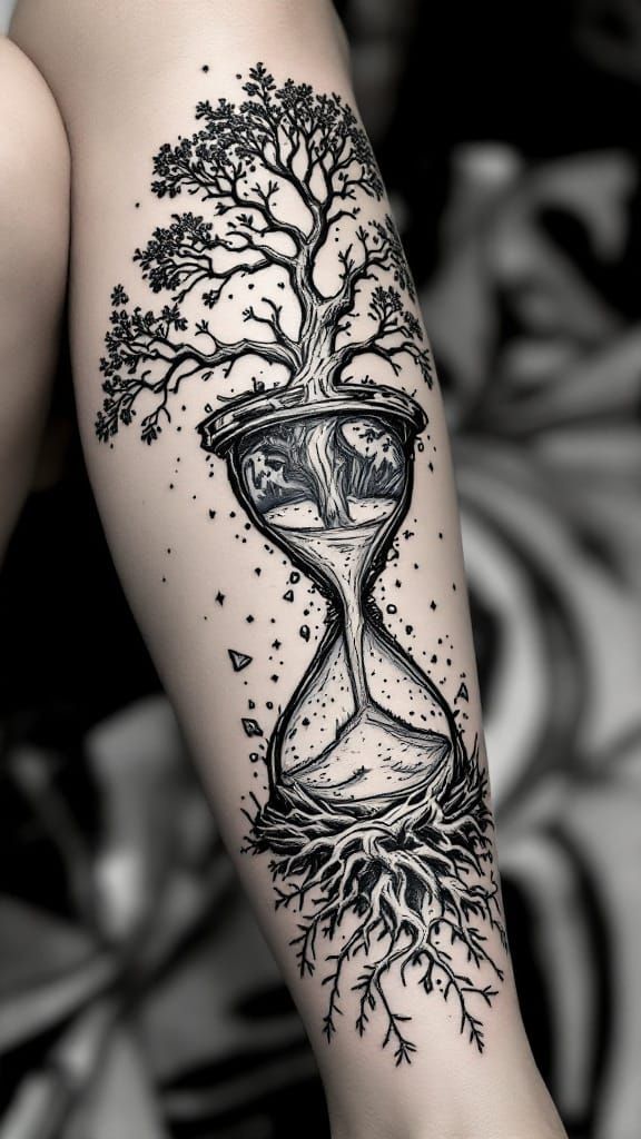 13) Hourglass and Tree of Life: A Tattoo Depicting the Cycle of Time