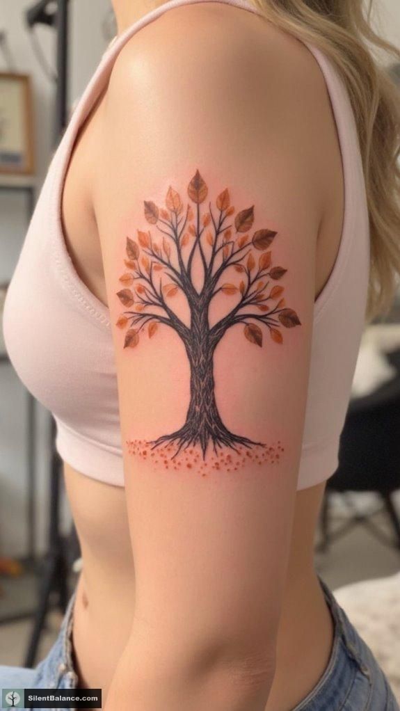 14) Autumn-Colored Tree Tattoo: Embrace Change