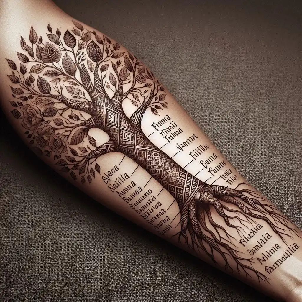 8) Family Tree Tattoo: A Story Alongside Family Names