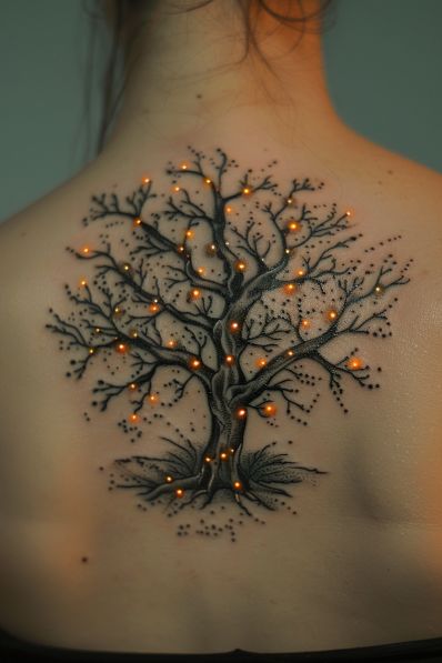 9) Shimmering Tree Tattoo: A Work of Art Glowing on Your Back