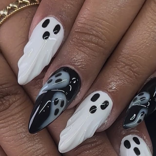 The timeless elegance of black and white has been beautifully elevated by the introduction of 3D figures. These nails are so pretty! They make it look like there are tiny ghosts floating around your hand whenever you move it. It’s crafted with such detailed and artistic workmanship, it’s perfect for anyone looking for a stylishly spooky look for Halloween.
