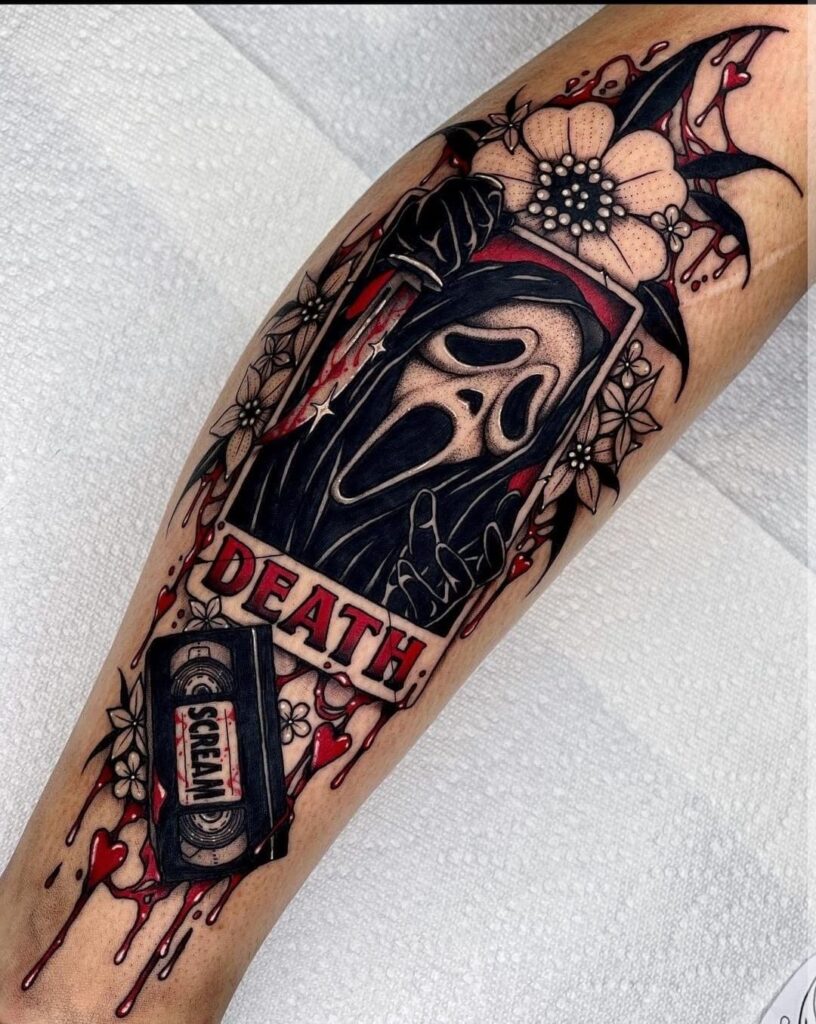 29) “Death” Card: “Scream” Themed Tarot Tattoo