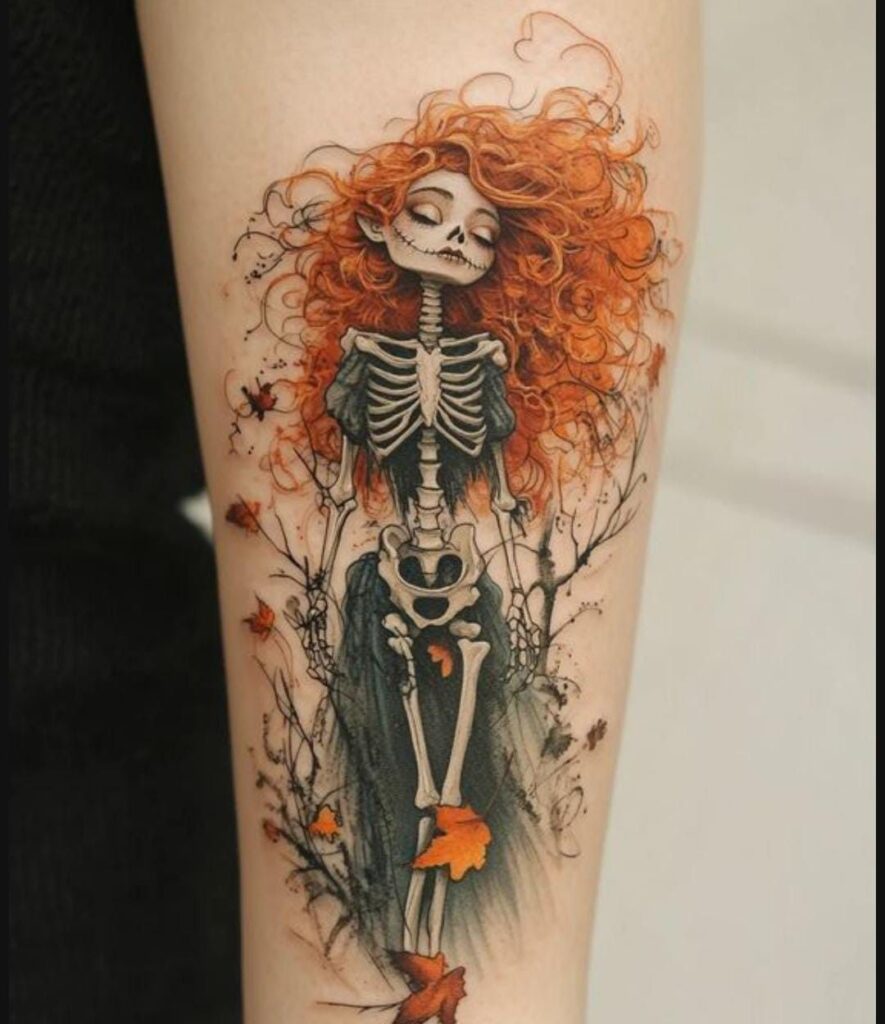 7) Melancholic Beauty: The Red-Haired Skeleton and the Autumn Tattoo