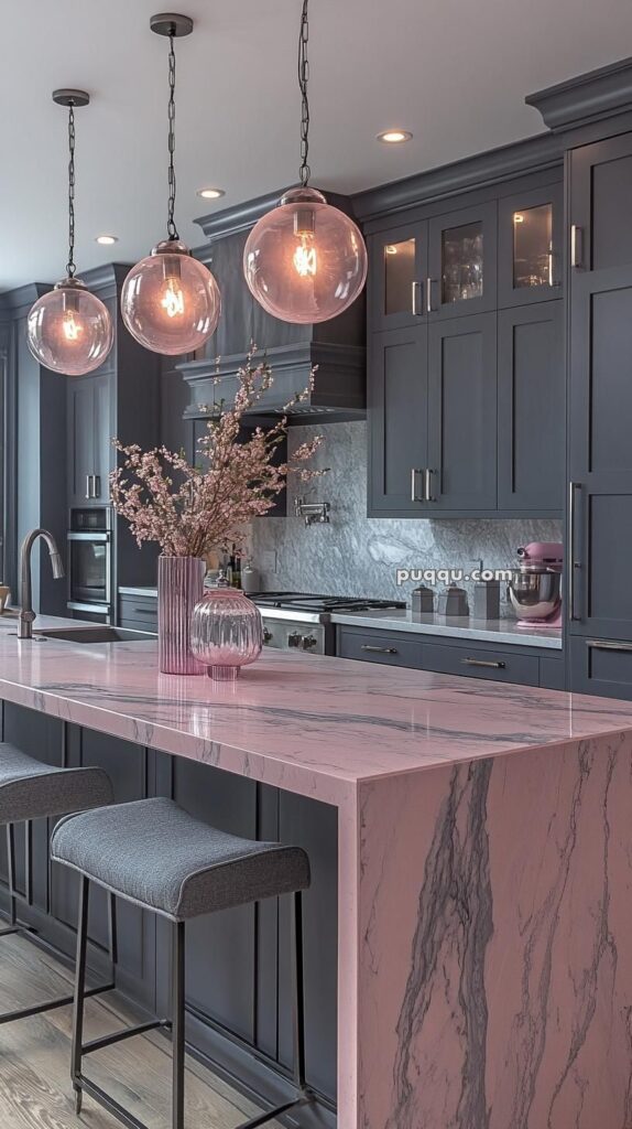 3) The Dance of Pink Marble and Gray Tones: Modern Kitchen Design