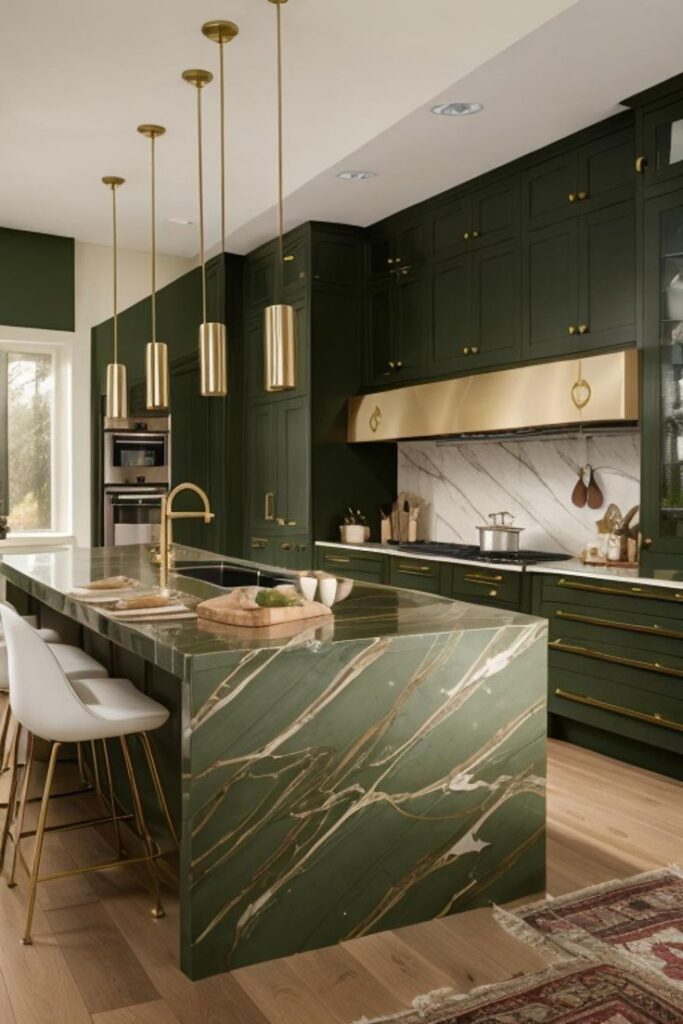 4) A Luxurious Combination of Emerald Green and Gold: Kitchen Decor