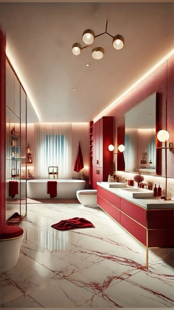 9) The Bold Combination of Red and White: Modern Bathroom Decor