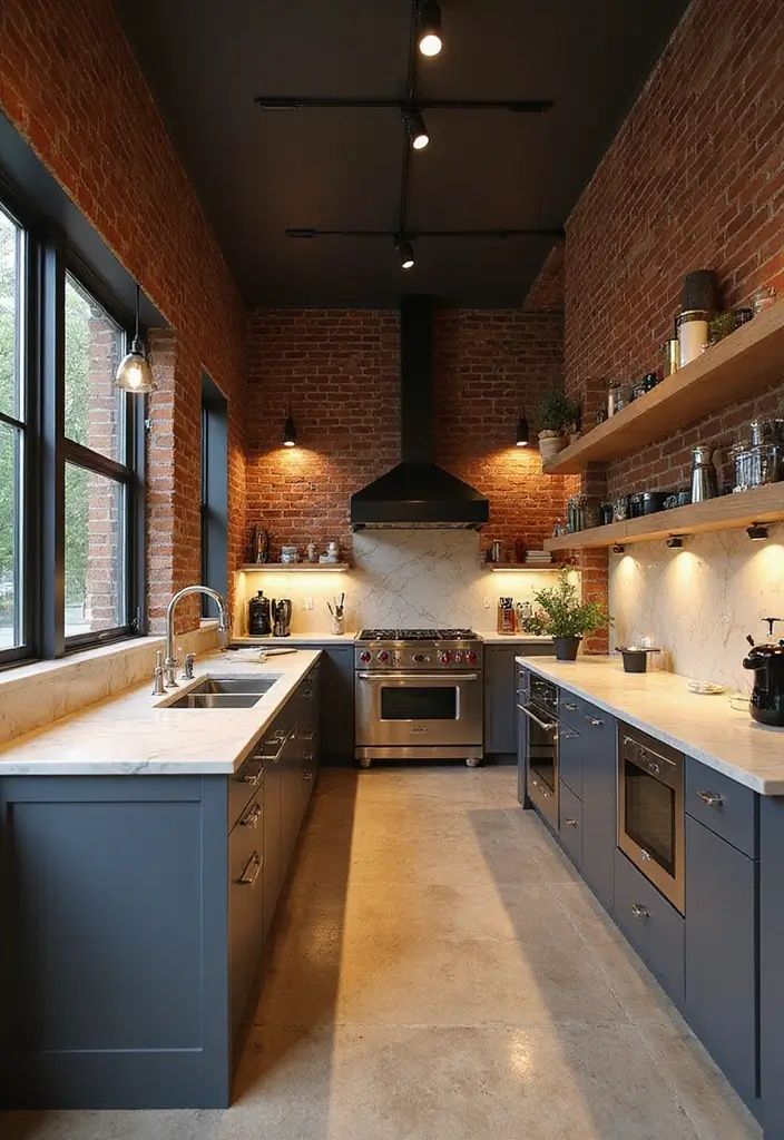 21) Industrial Chic: Brick Walls and Modern Kitchens