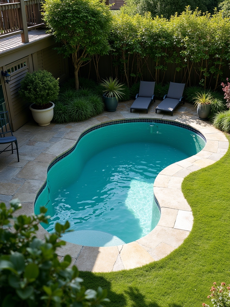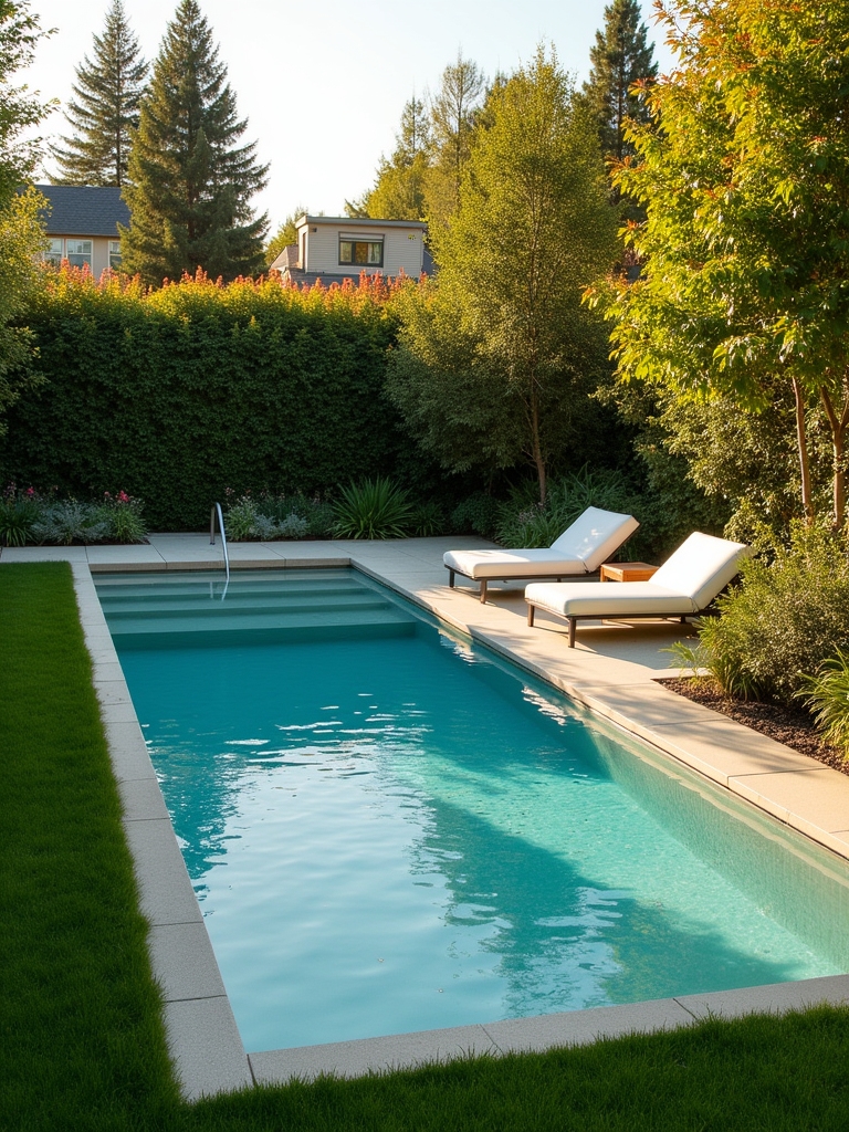 This is the moment when privacy becomes design. Surrounded by tall hedges, this charming, kidney-shaped pool whispers, “This is my secret corner.” It’s not overly showy, but it’s incredibly inviting. The two lounge chairs are clearly there for those who want to spend half the day reading a book and enjoying the gentle breeze.