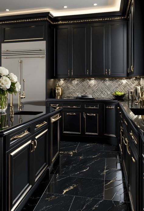 8) The Epitome of Elegance: A Black and Gold Kitchen